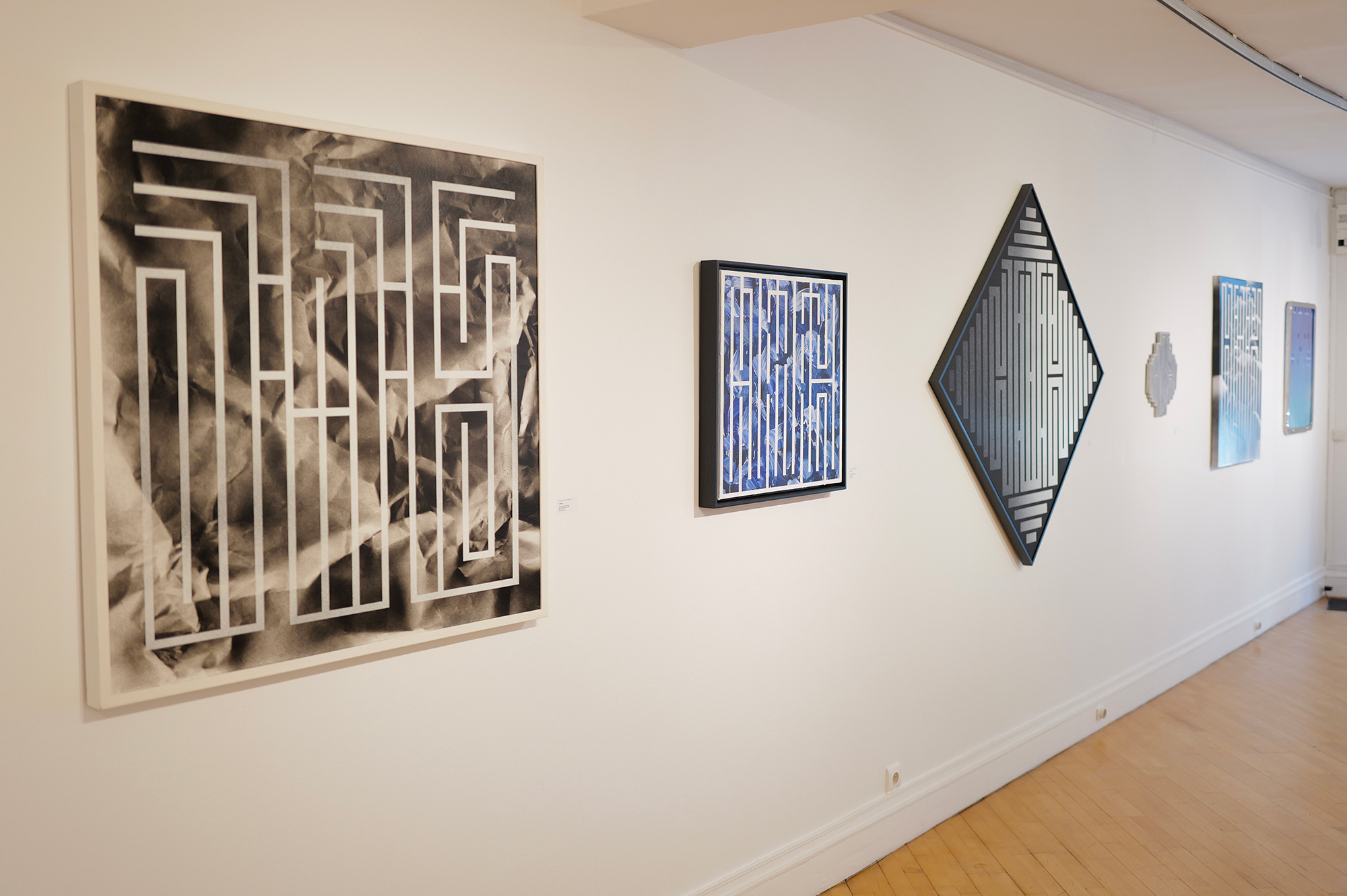 Fils de laiton et élastiques, labyrinthes et luchrones, lettres et lumières, poudre de marbre et papiers marouflés, autant de matières au service de l’esprit qui nous relient les uns aux autres dans la grande aventure de l’art au XXIe siècle, grâce à Alain Le Boucher, L’Atlas, Franck Loret et Sunmi Kim.